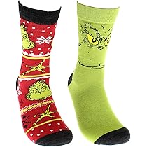 Amazon Com Dr Seuss The Grinch Grinchmas Adult Holiday Crew Socks 2 Pair Clothing Shoes Jewelry